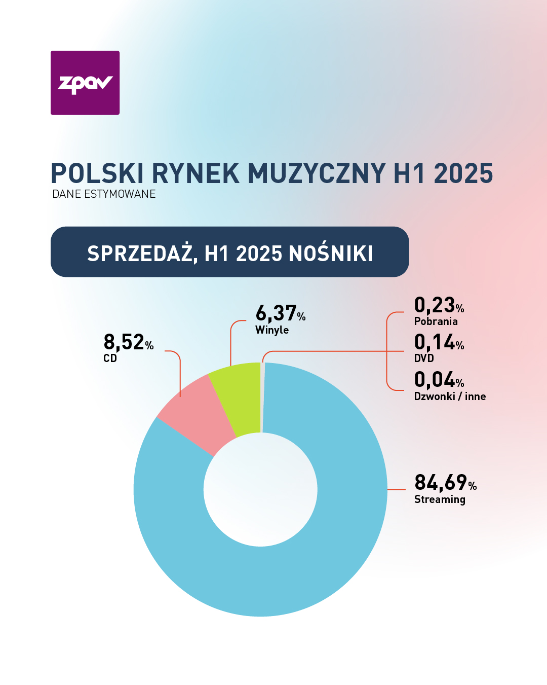 Pierwsze sześć miesięcy 2025 r. potwierdziło bardzo dobrą kondycję polskiego rynku muzycznego, który nieprzerwanie rośnie już od 11 lat. Tegoroczne wyniki nie tylko pokazują stabilny rozwój, ale też pozwoliły Polsce awansować na 16. miejsce w światowym rankingu IFPI – to awans o dwie pozycje i najwyższy wynik w historii. Według danych Związku Producentów Audio Video, wartość rynku osiągnęła 455 mln zł, co oznacza wzrost o 15,9% w porównaniu z analogicznym okresem ubiegłego roku.