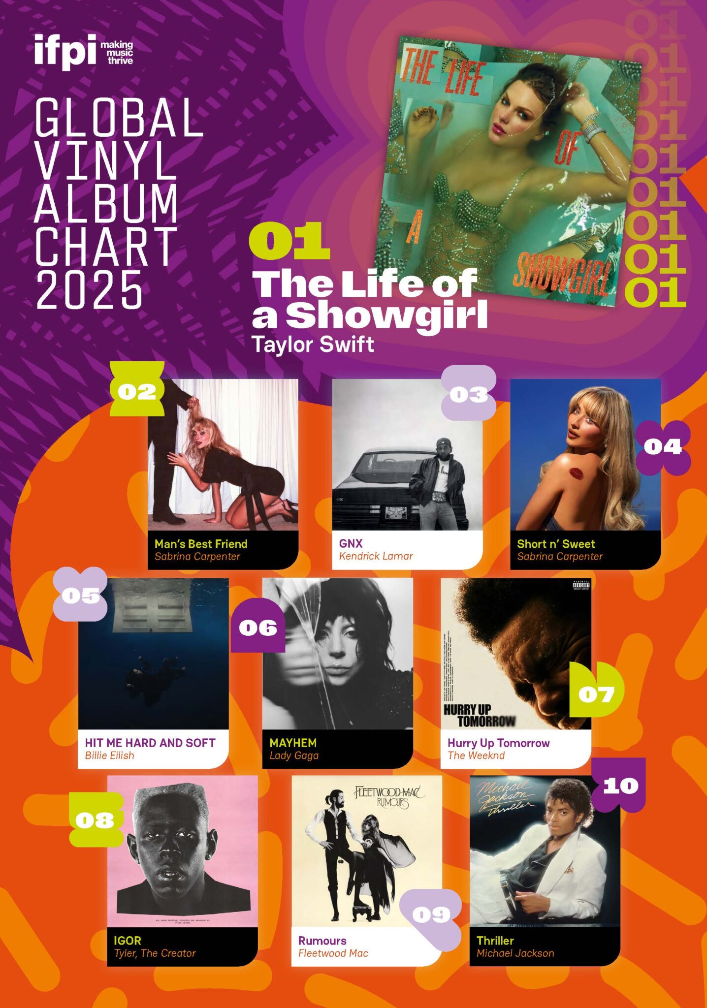 · Taylor Swift Artystką Roku 2025, liderką globalnych list albumowych oraz rekordzistką sprzedaży winyli – czwarty rok z rzędu.